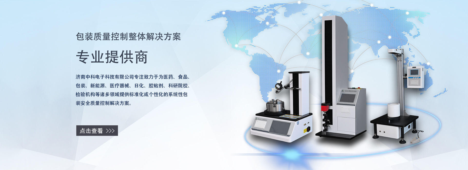 濟南中科電子科技有限公司是一家集包裝及膜材檢測儀器的研發(fā)、制造、銷售和服務為一體的專業(yè)科技公司。專注致力于為食品、醫(yī)藥、包裝、新能源、醫(yī)療器械、石化、日化、膠粘劑、科研院校、檢驗機構等諸多領域提供標準化或個性化的系統(tǒng)性包裝及膜材質(zhì)量控制解決方案。
